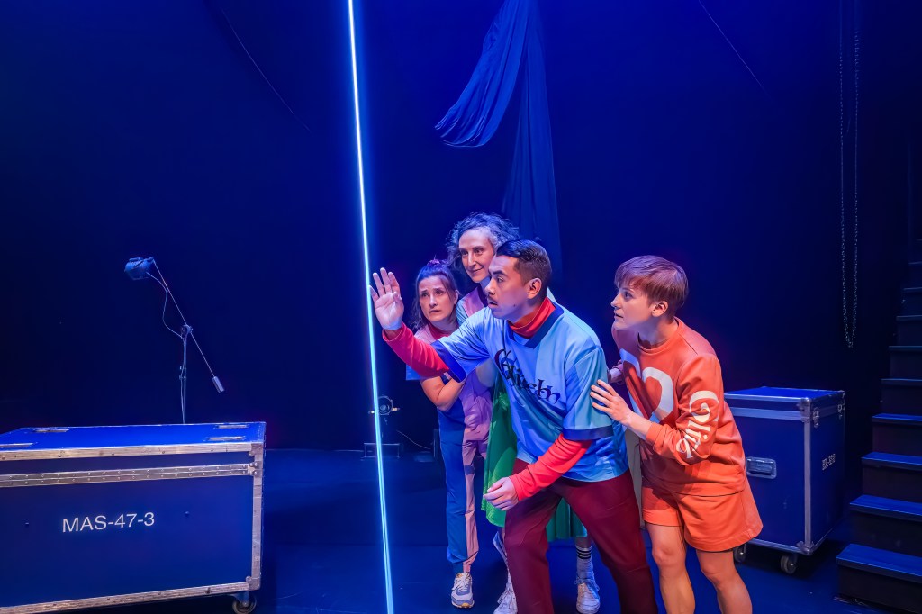 Four performers descend the stairs into a mysterious space full of storage crates. Some preliminary flexes with visuals cues you in to the fact that lights are going to be another actor in this show. In vibrant coloured costumes, the characters undertake a journey of discovering the mysterious space. They open one box and then another, interacting with what it revealed before passing to the next. It was nicely paced, starting from small vignettes and then moving to more choreographed dance numbers. At its best children’s theatre is exploratory and sensory in a way adult theatre stops short of and this was very much in that tradition. It was also very Montréal in its blend of physical theatre, dance, contortion, and general multidisciplinary multimedia goodness. It is breathtaking how much skill it takes for a production to come across as this playful. It is an extremely cohesive piece.